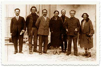 עם חברים בירושלים, 1923. מימין: רחל שזר, דוד בן גוריון, יוסף ברץ, עדה מימון, דוד רמז, יהודה קופלביץ, יוסף שפרינצק