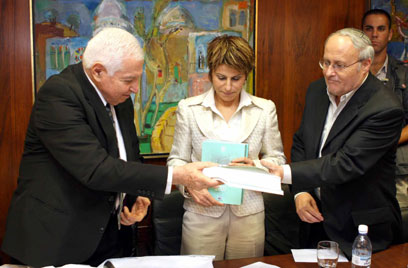 מעלעלים בדו"ח. אורלב, איציק ולינדנשטראוס (צילום: אריאל ירוזולימסקי)