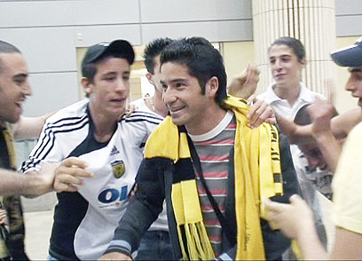 אלבארס. אוהדי בית"ר הראו לו שערים דרך הפלאפון (צילום: יועד כהן)