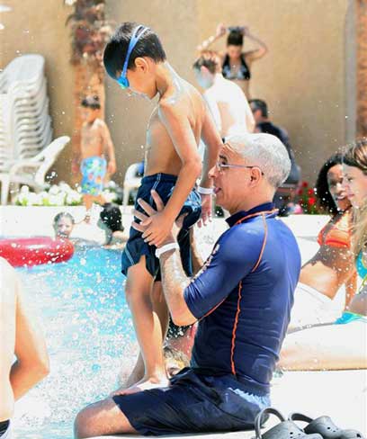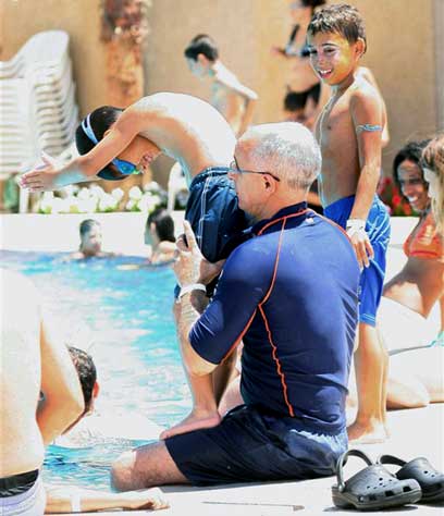 לא בטוח לקפוץ משפת הבריכה, לכן עדיף לקפוץ מאבא