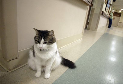אוסקר החתול באחד ממסדרונות בית האבות (צילום: AP)