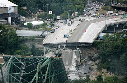 הגשר שהתמוטט הלילה. חיבר בין מיניאפוליס לסנט פול (צילום: איי.פי)
