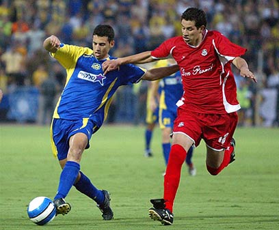 יובל שפונגין מקדים שחקן אנדורי בבלומפילד (צילום: אלי אלגרט)