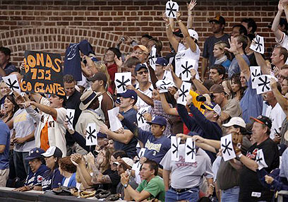 שיא עם כוכבית. אוהדי הפאדרס לא מתלהבים מהשיא (צילום: איי פי)