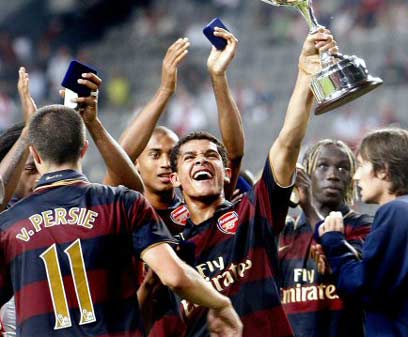 ארסנל חוגגת את הזכייה בטורניר אמסטרדם. קיץ מחויך (צילום: רויטרס)