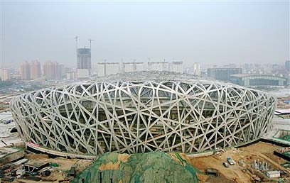 הולך ונבנה - אך באיזה מחיר. האיצטדיון האולימפי בבייג'ינג (צילום: AP)
