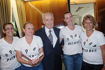 האמהות עם הנשיא. "יש על מי לסמוך" (צילום: ישראל נוי)