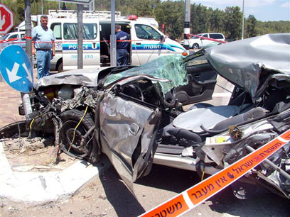 נמחץ למוות. הרכב אחרי התאונה (צילום: אחיה ראב"ד)