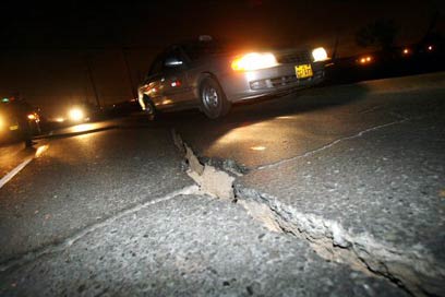 סדק שנפער בכביש בעקבות הרעש. הורגש במשך יותר מדקה (צילום: AFP)