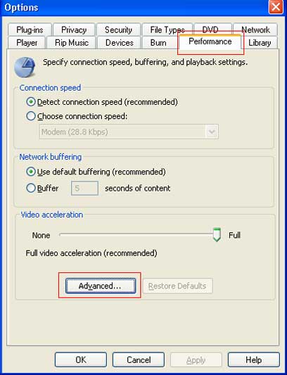 נעבור ללשונית חמישית מלמטה, Performance (ביצועים). בחלק התחתון, שנקרא Network Buffering, יש להיכנס ל-Advanced (מתקדם).