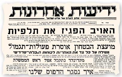 כותרת העיתון "ידיעות אחרונות" ב-20 באוגוסט 1948:
