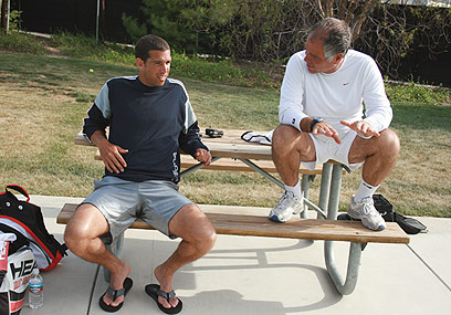 הראל לוי ומאמן הכושר שלו, יובל חיגר. ישחק היום? (צילום: איגוד הטניס)