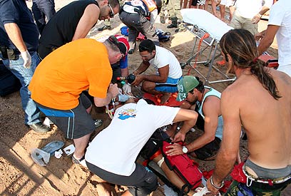 פינוי הפצועים מהים (צילום: מאיר אוחיון)