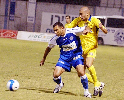 משחק קשוח במיוחד. איסמעיל עמאר מול ארז מסיקה (צילום: אלי אלגרט)