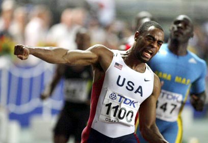 רגע השיא. טייסון גיי חוצה את קו הסיום בגמר (צילום: איי אף פי)