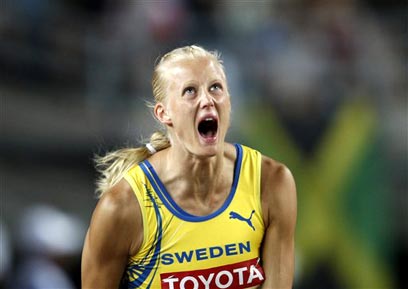 ילנה איסינבייבה, אולי הכוכבת הגדולה של האתלטיקה בעידן הנוכחי ביחד עם קלופט, נזקקה לקפיצה אחת בלבד במוקדמות כדי לעלות לגמר הקפיצה במוט עם 4.55 מ'. בגמר היא תפגוש את האמריקנית ג'ניפר סטוצינסקי, שכבר קבעה 4.88 מ' השנה, ואת הפולניות אנה רוגובסקה ומוניקה פירק.