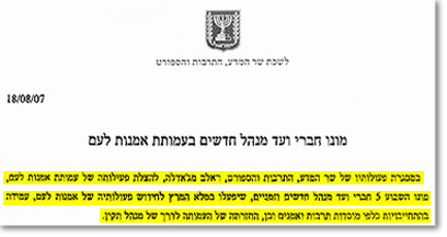 במשרד התרבות מכחישים היום בכל תוקף את דבר המינוי ואומרים בתגובה: "השר לא מינה את חברי הועד המנהל החדשים ב'אמנות לעם'. מינוי זה הוא מסמכותה של מועצת 'אמנות לעם'. אין זה תפקידו של השר למנות או להתערב במינויים אלו".