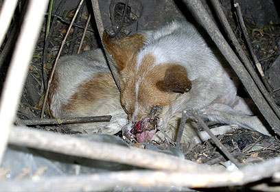 "קשה לנו להאמין שהיא הצליחה לשרוד". הכלבה מסתתרת (צילום: אבי קוזי)