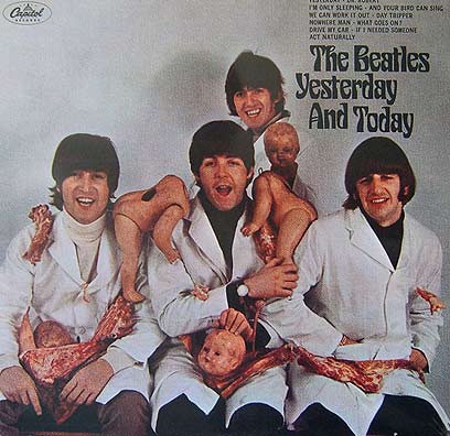 ביום הצילומים הם הזמינו מהאטליז הקרוב לאולפן ההקלטות המפורסם שלהם, "אבי רואד", נתחי בשר גדולים למדי. הם גם הצטיידו בבובות דמויות אדם שדאגו לפרקן לגורמים בעוד מועד. כשהם עוטים על עצמם חלוקי קצבים לבנים, הארבעה הופיעו עם כל הציוד האמור לסשן הצילומים. אז הם בחרו את הצילום הבוטה ביותר ושלחו אותו לארה"ב. באופן מפתיע, אף אחד במשרדי חברת "קאפיטול" לא שם לב לעניין, והחברה הדפיסה כמה מאות עותקים.