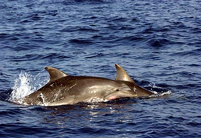 תצפית שגרתית על דולפינים החיים לאורך חופי ישראל הניבה היום (ד') אירוע נדיר: להקה קטנה, בת שני דולפינים בוגרים וגור בן כשנה, שכשכה מול חוף געש - והבוגרים התפנו למלאכת פרו ורבו מתחת לפני הים. "נקבת הדולפין שחתה לצד הגור הצעיר ולידם דולפין בוגר", מתאר אביעד שיינין מהחוג לציוויליזציות ימיות באונ' חיפה, שתיעד את ההזדווגות. "כשהדולפין הבוגר החל להתקרב לנקבה, שמנו לב שהגור הצעיר נותר מאחור במרחק של 30 מטרים לערך. כשהם סיימו, הוא התקרב אליהם שוב והדולפין הבוגר התרחק מעט".