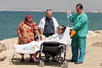 סלום עם אמו ורופאיו בחוף הים (צילום: עמית מגל)