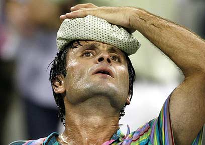 פבריס סנטורו עם שקית קר. משחק לילי מרגש נגד בלייק (צילום: רויטרס)