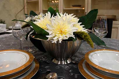 3. כלים מכסף על שולחן לבן תמיד מרשימים מאוד. אם אין כלי כסף אפשר להשתמש גם בכלים מנירוסטה או ממתכת, שנותנים מראה הייטקי ולא פחות זוהר מכלי כסף. מומלץ לשלב סידורי פרחים לבנים בכלים - בתוך מסננות מנירוסטה למראה כפרי, למשל, או בתבניות מנירוסטה. אפשר גם להקיף אותם בעלים גדולים.