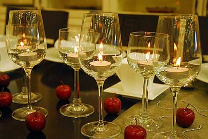 כוסות יין פשוטות ונרות קטנים יוצרים מראה דרמטי (צילום: דנה קופל, כלים באדיבות "הום סנטר")