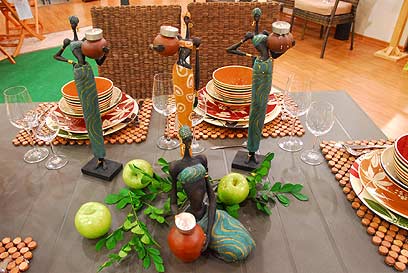 פסלים, פירות ונרות - הכל הולך בשולחן צבעוני (צילום: דנה קופל)