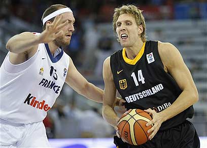 דירק נוביצקי קיווה להוביל את גרמניה לניצחון על צרפת, אבל טוני פארקר דאג שדווקא נבחרת הטריקולור תחגוג ניצחון 66:78 ותעלה למאזן של 1:2, בניכוי המשחק מול פולין, שכבר הודחה. רכז האלופה סן אנטוניו קלע 23 נקודות וצרפת שמרה על היתרון שלה כמעט מהרגע הראשון, למרות 28 נקודות של פורוורד דאלאס מאבריקס.