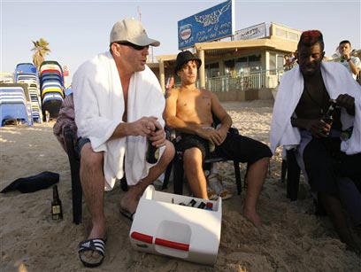 ריצ'י וחברים לא מוכרים עם פיילת בירות על החוף (צילום: AP)