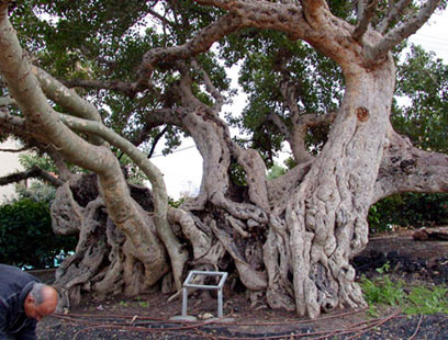למתבונן בפעם הראשונה נדמה שמדובר בכמה עצים הנטועים זה לצד זה. אבל זהו עץ אחד, שנטע קרל נטר, מייסד בית הספר "מקווה ישראל" לפני יותר ממאה שנה, ואלו הם שורשי האוויר שלו שהפכו ברבות השנים לגזעים שמשתרעים על פני יותר מדונם אדמה.