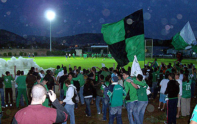 אוהדי מכבי חיפה. יגיעו לשיחת הבהרה עם יעקב שחר (צילום: עדי סרדס)