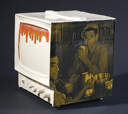 עבודה מהסדרה "ערוץ אלדווארה", שלומית באומן, קרמיקה, הדפס וזיגוג