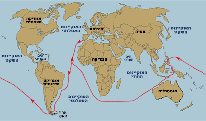 מגלנס הפליג מספרד ב-20 בספטמבר 1519 בראש צי של חמש ספינות, וצוות שמנה כ-260 מלחים. הוא חקר תחילה את שפך ריו דה לה פלטה באמריקה הדרומית בחיפוש אחר המעבר המבוקש, ובהמשך בדק כל מפרץ בחוף, שמא הוא מוליך אל צדה המערבי של היבשת. מסעו של מגלנס הוכיח באופן סופי כי כדור הארץ הוא עגול וכי כל האוקיינוסים מחוברים זה לזה. (הערך "מגלנס, פרננדו דה" – למנויי האנציקלופדיה)
