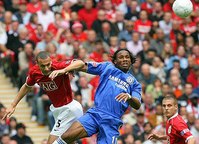 הכחולים בלעדיו במשחק החשוב. דרוגבה מול פרדיננד (צילום: איי פי)