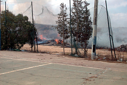 האזבסט הבוער, ליד בית הספר (צילום: ליאור בוהדנה, "השבוע בדרום")