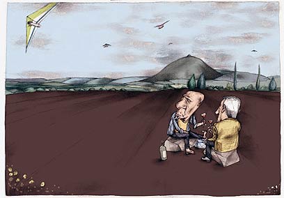 אני הולך עם מישהו שנקרא לו הצלם, למרות שהוא לא מצלם כבר שנים. לא לפרנסתו, בכל אופן: בשביל הפרנסה יש לו אישה שעשתה קריירה בקונצרן מסחרי גדול, ויצאה משם תחת מה שאנשי היי־טק אוהבים לכנות "מצנח זהב". כשלאשתך יש אחד כזה, כל מה שאתה צריך לעשות זה קניות כשהיא מבקשת, לא להשאיר כלים מלוכלכים בכיור ולהביא פרחים הביתה פעם בשבוע. מצנח זהב, מתברר, יכול להיות סידור נהדר לצניחת טנדם. וזה מה שהצלם עושה בשנים האחרונות: מנסה מיזמים שונים כמו עסקאות נדל"ן באיי יוון, מהדורת חדשות במעגל סגור לקונצרנים גדולים ופורטל גבינות בוטיק באינטרנט. אין כמו לעשות עסקים כשאשתך דואגת לפרנסה.