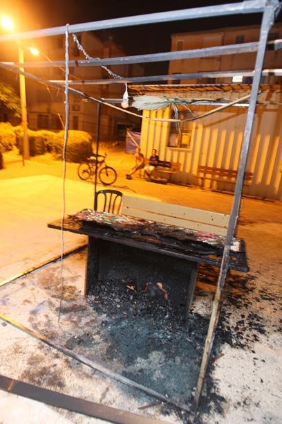 הסוכה שנשרפה סמוך לבית הכנסת בחיפה (צילום:עמית מגל)