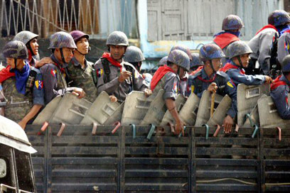 כוחות הביטחון היום בבירה לשעבר, יאנגון (צילום: AFP)