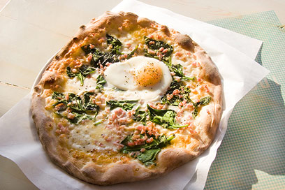 ארוחת בוקר. פיצה בנדיקט, "אייסברג וולקנו" (צילום: אבי גנור)