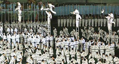 הצפון קוריאנים מדגימים טקוואנדו. שימוש מוגבר בכוח - אסור (צילום: AFP)