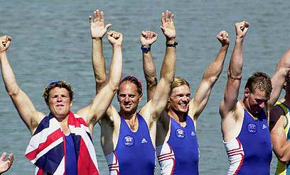 הבריטים, אחרי הזכייה בזהב בסידני 2000. מלכי האגם (צילום: איי פי)