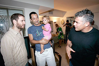 יאיר לפיד, חיים אתגר. ברקע: ג'ודי ניר מוזס. עוד ברקע: הגינה של לפיד