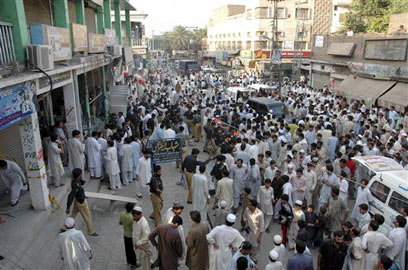 זירת הפיגוע בשוק בפשוואר, היום (צילום: AP)