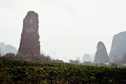 המגיע מצפון סין, מכיוון נהר היאנגצה, דרומה, אל המחוז העצמאי גואנגשי (Guăngxi), ימצא עצמו צופה אל עמודים זקופים. חלקם נראים כאצבעות גרומות המושטות אל-על או קמוצות לאגרופים, ואחרים כגושים מעוגלים מגיר אפרפר, המתרוממים בתלילות מעל פני הקרקע.
