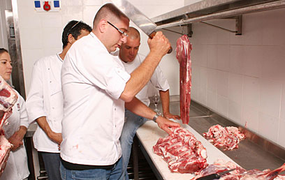 מיטל אריטן בת ה-30 מרמת-גן, כלכלנית בחברת היי-טק, נראית כאילו נולדה עם סכין ביד, כשהיא מקצצת תוך כדי שיחה נתחי בשר. "זו אחת החוויות הנדירות שעברתי בחיים. הבשר, הריח, האווירה במקום, זה משהו שקשה לתאר. חשבתי שמלאכת פירוק הבשר וחיתוכו היא פשוטה, אך גיליתי שנדרשים לה עדינות, דיוק ותשומת לב מרובים. את הדברים האלה אני מביאה מהתחום הפיננסי, בו כל מספר, פסיק ונקודה משנים את פני התוצאה. בדיוק כמו שבעולם המספרים יש סדר קבוע שצריך להקפיד עליו, כך גם בעיסוק בבשר".