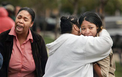 תלמידים מבוהלים מחוץ לבית הספר, אתמול (צילום: AP)