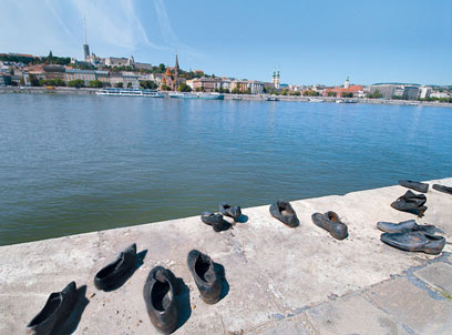 על גדת הדנובה, קצת אחרי הפרלמנט ההונגרי הענק, על קו המים הנושק לכביש המהיר, חבוי אתר הזיכרון הצנוע והמרגש ביותר בעיר: רצועה קצרה של נעליים נטושות, פזורות בחוסר סדר. נעלי ילדים מצועצעות, נעלי נשים דקיקות, נעלי גברים מרופטות. פניהן אל הנהר ומעבר לו אל קו הנוף הנפלא של העיר.
