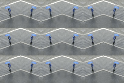 אורי דותן עולה לקומה השלישית או לגג של גורד שחקים כדי לראות איך הופך המצעד הממושמע של אנשים במעברי חצייה לסוד אמנותי.